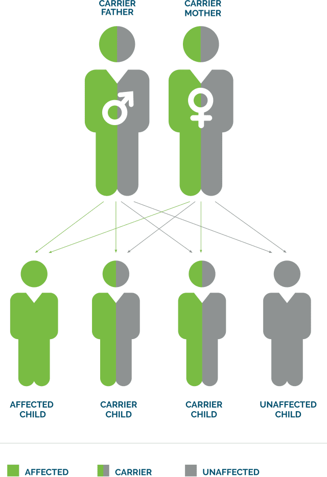 A recessive genetic disease occurs when both copies of a particular gene have pathogenic variants. If you have one copy of a gene with a variant and one normal copy of that same gene, you are considered a "carrier" for that recessive genetic disease even though you are not affected by that disease.